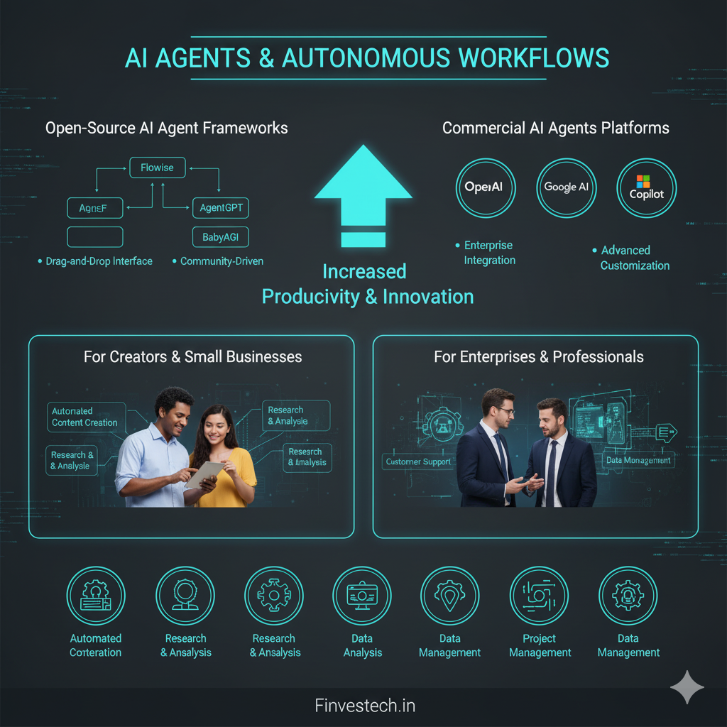 AI agents and autonomous workflow automation represent the most significant advancement in business technology since the internet revolution, fundamentally changing how we approach work and problem-solving. The combination of powerful commercial platforms and accessible free alternatives means businesses of all sizes can benefit from this technological leap. As we move further into 2025, organizations that embrace AI agents will gain substantial competitive advantages in productivity and efficiency. The AI agent revolution is just beginning, and staying informed about these developments is crucial for leveraging these powerful technologies. Follow Finvestech.in for the latest AI tools, trends, and free alternatives that can transform your business in this exciting era of autonomous intelligence.